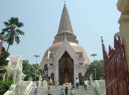 The Phra Pathom Chedi located at  Nakhon Pathom city is the world's tallest Buddhist monument, at 114 meters (380 feet).
