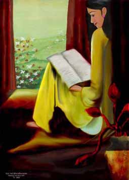 T.T.Kh. Bài thơ thứ nhất Thuở trước hồn tôi phơi phới quá, Ḷng thơ nguyên vẹn một làn hương... Nhưng mà nghệ sĩ từ đâu lại, Êm ái trao tôi một vết thương. Tai ác ngờ đâu gió lạ qua, Làm kinh giấc mộng những ngày hoa, Thổi tan tâm điệu du dương trước Và tiễn Người đi bến cát xa . Ở lại vườn Thanh có một ḿnh, Tôi yêu gió rụng lúc tàn canh; Yêu trăng lặng lẽ rơi trên áo, Yêu bóng chim xa, nắng lướt mành. Và một ngày kia tôi phải yêu Cả chồng tôi nữa lúc đi theo Những cô áo đỏ sang nhà khác, - Gió hỡi! làm sao lạnh rất nhiều ? Từ đấy không mong, không dám hẹn Một lần gặp nữa dưới trăng nghiêm, Nhưng tôi vẫn chắc nơi trời lạ, Người ấy ghi ḷng :"vẫn nhớ em !" Đang lúc ḷng tôi muốn tạm yên, Bỗng ai mang lại cánh hoa tim Cho tôi ép nốt ḷng dư lệ Rỏ xuống thành thi khóc chút duyên ? Đẹp ǵ một mảnh ḷng tan vỡ Đă bọc hoa tàn dấu xác xơ! Tóc úa giết dần đời thiếu phụ... Th́ ai trông ngóng, chả nên chờ ! Viết đoạn thơ đầu lo ngại quá V́ tôi c̣n nhớ hẹn nhau xưa : - "Cố quên đi nhé, câm mà nín Đừng thở than bằng những giọng thơ !" Tôi run sợ viết; lặng im nghe Tiếng lá thu khô siết mặt hè Như tiếng chân người len lén đến. - Song đời nào dám găp ai về! Tuy thế, tôi tin vẫn có người Thiết tha theo đuổi nữa, than ôi Biết đâu ...tôi : một tâm hồn héo, Bên cạnh chồng nghiêm luống tuổi rồi! |