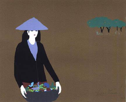 Bên chiều một gánh hàng hoa chưa bán hết Người bán hoa đôi mắt trong veo Ta phút chốc muốn mình giàu có. Bên chiều bầy trẻ thả diều Những cánh diều hoa sặc sỡ Tiếng cười trong veo trong veo Ta mơ ngày tóc cháy chân trần Hò hét vô tư dọc triền sông mẹ Bên chiều một góc chợ ế Nhàu mặt người đợi khách Chợ nhỏ hàng ôi ráng chiều tím tái Ta nhớ mẹ ngày mưa gió Chợ Ghềnh xa bước chân gầy. Bên chiều mắt trẻ ngóng mẹ Cửa lớp mưa bay bay Mắt ta ướt nhòa Bàn chân không nỡ bước Chạm vào những búp tay Thấy mình là một giọt sương. Bên chiều ta đợi Những niềm vui nho nhỏ đang về. |