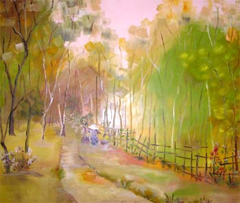 Tôi, con đường quê nhỏ chạy lang thang, Kéo nỗi buồn không dạo khắp làng. Đến cuối thôn kia hơi cỏ vướng Hương đồng quyến rũ hát lên vang. Từ đấy mình tôi cỏ mọc đầy, Giọc lòng hoa dại ngát hương lây . Tôi ôm đám lúa, quanh nương sắn, Bao cái ao rêu nước đục lầy ... Những buổi mai tươi nắng chói xa Hồn tôi lóng lánh ánh dương sa, Những chiều êm ả tôi thư thái Như kẻ nông phu trở lại nhà . Tôi đã từng đau với nắng hè: Da rôi rạn nứt bởi khô se, Đã từng điêu đứng khi mưa lụt: Tôi lở, thân tôi rã bốn bề . San sẻ cùng người nỗi ấm no Khi mùa màng được, nỗi buồn lo Khi mùa màng mất, tôi ngây cả Với những tình quê buổi hẹn hò . Và thế đời tôi hết cái buồn Trong làng. Cực khổ đắm say luôn, Tôi thâu tê tái trong da thịt Hương đất, hương đồng chẳng ngớt tuôn. (Nghẹn ngào) |