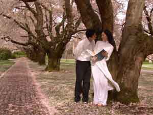 Ngày xưa Hoàng Thị Phạm Thiên Thư Em tan trường về đường mưa nho nhỏ Chim non giấu mỏ Dưới cội hoa vàng Bước em thênh thang Áo tà nguyệt bạch Ôm nghiêng cặp sách Vai nhỏ tóc dài Anh đi theo hoài Gót giầy thầm lặng đường chiều úa nắng Mưa nhẹ bâng khuâng Em tan trường về Cuối đường mây đỏ Anh theo tìm Ngọ Dáng lau lách buồn Tay nụ hoa thuôn Vương bờ tóc suối Tìm lời mở nói |