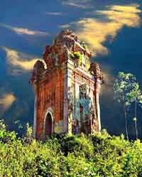 Tháp Chàm lặng lẽ sáng lên giữa rừng.